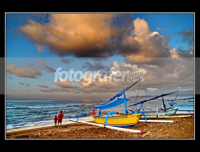 Kemarin waktu libur ke Bali timur.rnDi depan pantai Puru Bagus Villa. Pagi hari.rnOlahan warna setikit saja... Awannya asli...rnTerima kasih FN ers semua !