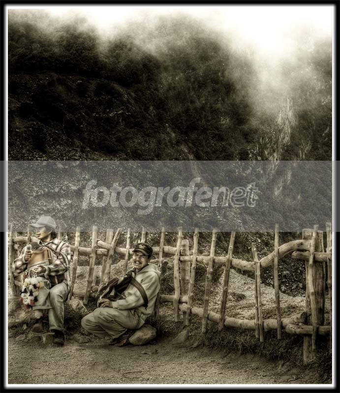 Diambil di Tangkuban Perahu, para penjual yang tetap tersenyum menjajakan dagangan.. ;)nPas kebetulan ada kabut,..tapi gak tau jadi distracted POI nya gak ya ?nMasih seri tone gosong, maklum masih belajar, jadi mohon input dan saran rekan-rekan semua.nnThanks