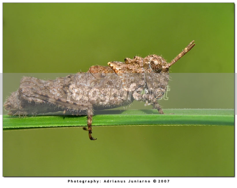 entah jenis apa belalang kecil satu ini tapi ngeliatnya jadi inget Ben Grimm nya Fantastic 4... :D rnukurannya baru sekitar 1 cm dan sepertinya masih muda terlihat dari sayapnya belum terbentuk sempurna...rnrnsemoga berkenan dan terima kasih sudah mau mampir, jadi sekalian aja dibantai...rnrnsalamrn
