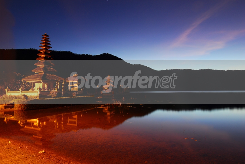 nsunrise di danau bratan, Bali..sinar lampu jalan membuat pura menjadi keemasan....:)