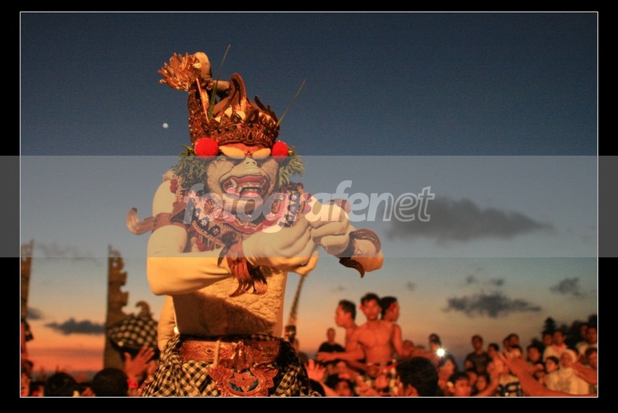 Ternyata motret stage-act itu susah yaaa ... 100 jepret cuma dapet satu atow dua yg bagus. Bener kata orang2, catch the right moment can be consider as our luck ...rnrnFoto diambil di Uluwatu, waktu Barong dance ... motret sambil sebel karena kacamata gue disamber sama monyet beneran ... uhuk2 ...rnrnDate Picture Taken: 2007:07:26; 17:46rnISO: 400rnFocal Length: 24mm