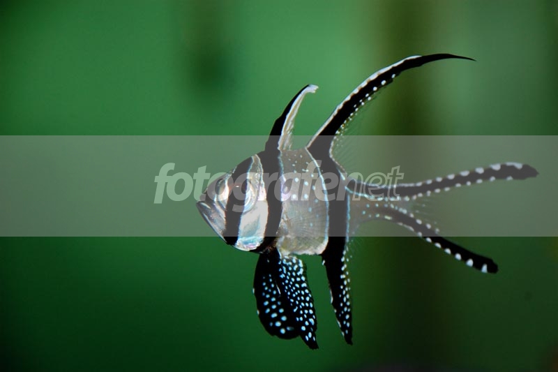 ikan capungan di aquarium air laut di rumah, di foto malam hari menggunakan build in flash