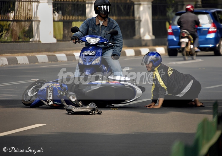 Date Time Original: 2007:06:16 10:19:55Moment ini sebetulnya kebetulan berada tidak jauh dari saya, niat saya sedang merekam obyek angkot2.Yang saya heran, koq si pengemudi motor yg jatuh malah tersenyum... :-) All Komen Are Welkom.....Salam.....