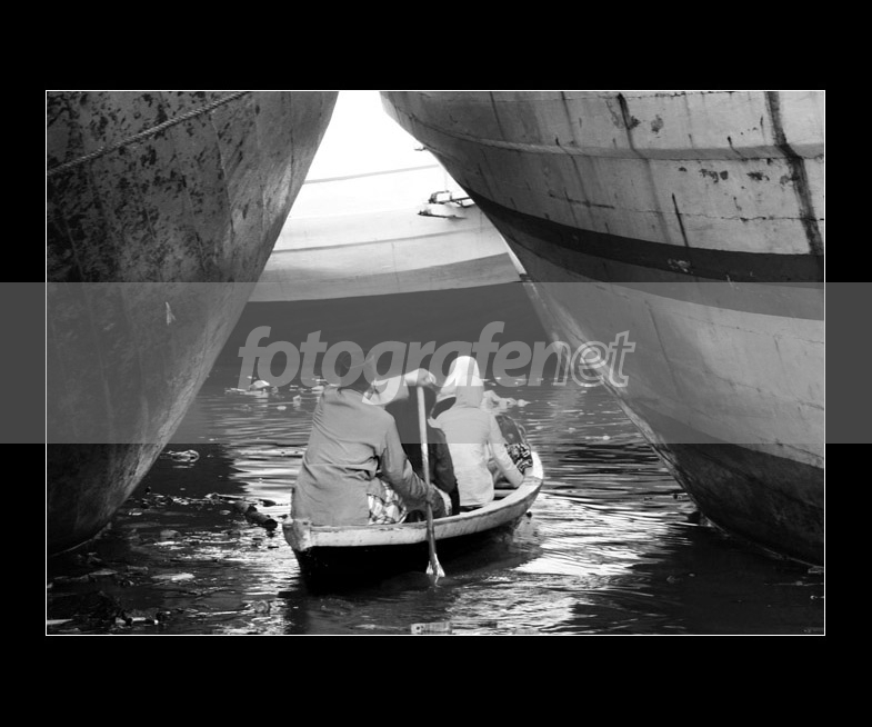 Waduh... framingnya benar2 keren! Kayaknya transpor seperti ini tak bebas dari bahaya... mengerikan berada di pancung kecil diantara kapal segede itu.... Great shot! Salam dari Batam ~Ann~