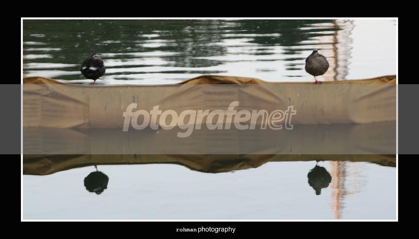 ISO: 100rnExposure Time : 1/10"rnF Number : F10rn(foto tidak diolah sedikitpun, hanya dicropping dan diberi frame)rn"Dua ekor bebek yang sedang bertengger dan bercermin dengan gayanya masing-masing... :)" posisi bebek jauh ditengah danau, hendheld, jadi agak shake.. Gomen ne... :(rnrnkritik, saran dan yang udah mampir... terima kasih...