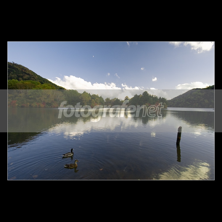 Foto pada saat sore hari, dimana permukaan danau dan bukitnya terhalang oleh shadow tetapi langit masih cerah. Saya mencoba mengakomodir perbedaan pencahayaan kontras antara langit dengan bayangannya di permukaan danau. nSedikit teknik berbeda saya gunakan untuk menghasilkan foto "A Swimming Duck".