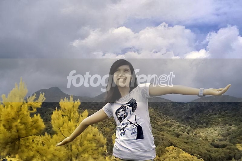 Kayaknya model & IR itu termasuk zat adiktif ya? Oke, cuma masalah tangan kiri model aja yg posisinya nanggung terhadap puncak pegunungan di belakang. Naik dikit boleh, turun dikit boleh juga. Salam ...