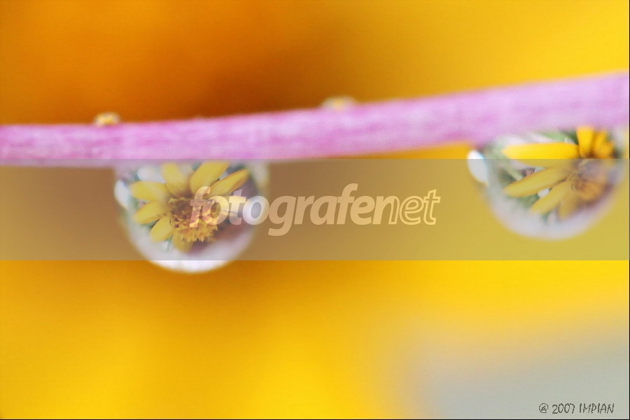 refleksi dari tetes embun enak diliat..dg BG yg kekuningan...great shot