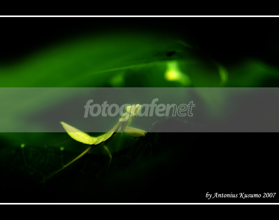 Belalang sembahnya alias mantisnya terekam dengan cantik sekali. Gradasi warna hijaunya keren banget. Selamat Tahun Baru 2008.