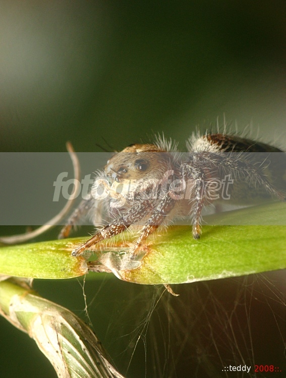 Ini laba-laba agak penakut, dideketin dikit klo gak hati-hati langsung pindah posisi, saat kembali ke sarangnya, saya coba ambil angle.. tapi sayang sebelah kanan kamera banyak ranting dan daun, kalau saya paksa agak kekanan supaya dapat semua badannya, tentu rantingnya pada bergoyang dan membuat takut si laba-laba, terpaksa perutnya kepotong... daripada keburu lari langsung aja saya sikat "JEPRETT"rnrnDate Time Original: 2008:01:19 07:51:37rnISO Speed Ratings: 100rnAperture : F/8rnSpeed : 1/250rnFlash : On + Full