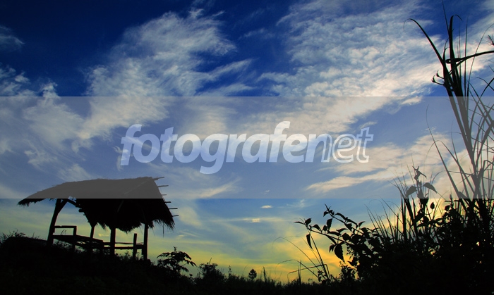 Siluet yg indah di awan yg biru. Anglenya ok. Saya kira masih sama dgn obyek yg sebelumnya, sebab gubugnya kok sama, dua2nya mantap. Salam