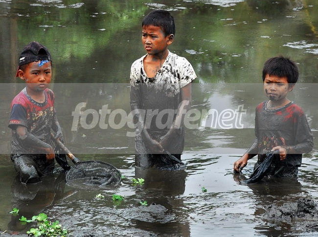 kasih bocah2 itu, mana airnya kotor ya pak