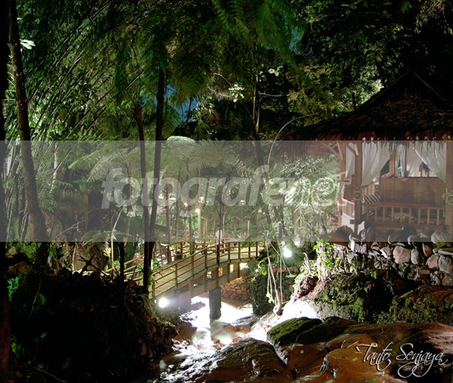 Wah ternyata fotonya di Kampung daun juga ky saya... Tapi anglenya ok jg, dpt angle tinggi... Kampung Daun emang bgs buat Night Shoot... Setuju sama yang di atas deh... IMHO Gazebonya kurang menonjol... Tapi fotonya tetap MANTAB... Salam...