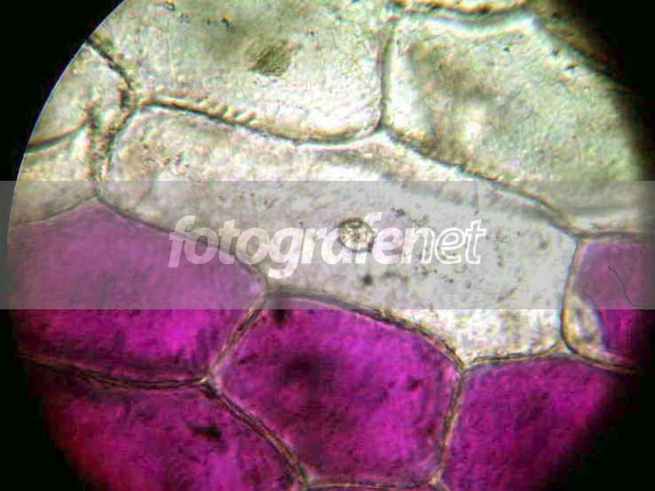 Sebuah Inti Sel (nucleus) dari bawang merah.nnPembesaran 400x (tidak termasuk zoom kamera). Mikroskop dengan pembesaran 400x (lensa obyektif 40x, lensa okuler 10x) mengakibatkan gambar sel menjadi redup (walaupun lampu benda kerja sudah disetel paling terang). Untuk bisa memperoleh foto yg lebih jelas, terpaksa harus setel kamera shutter speed 4 detik. Karena tidak ada tripod, terpaksa tiap kali jepret, selalu tahan nafas minimal 4 detik (biar kamera tidak goyang)... yah gimana lagi.. semua serba "terbatas"...nnSemoga berkenan dengan segala keterbatasan ini.