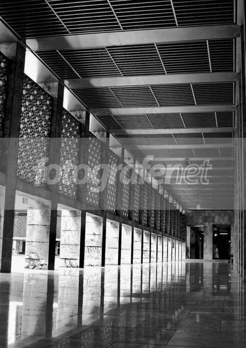 Angle rendah yg memperlihatkan arsitektur dan refleksi indah, memang lebih cakep dibuat BW, pilihan yg tepat. Salam