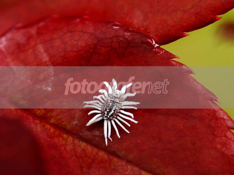Seekor kutu (?) di atas daun mawar muda yg berwarna merah....