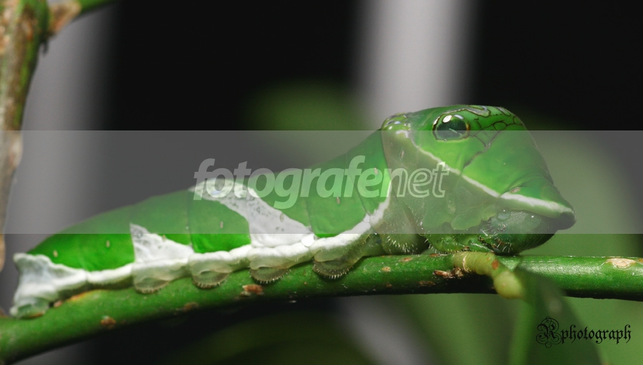 Foto makro ulat sesi terdahulu, diambil dr angle yg berbeda.nDiolah di PS biar warna ijonya jadi lebih jreng.nnMohon saran dan kritiknya.nThx yg sudah mampir