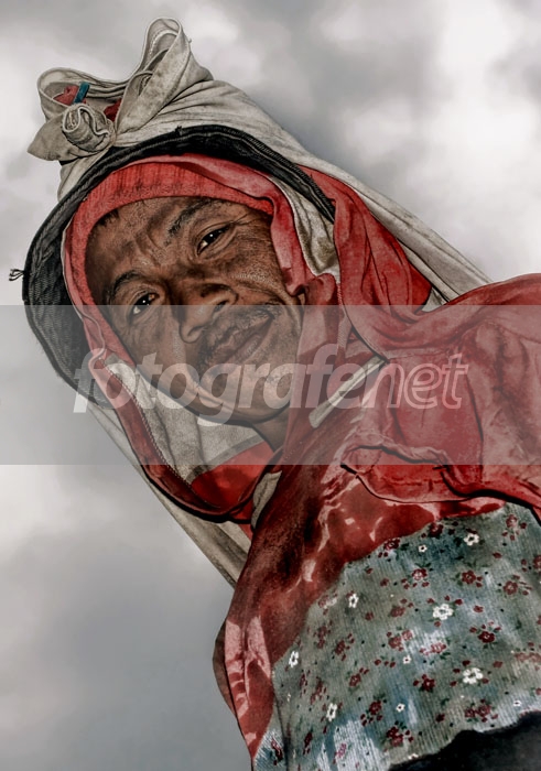 ...wajah kotor dengan costum unik pelindung sengat matahari khas pekerja kasar ini...kontras banget dengan senyum kebahagiaan dan tulus... humanis...great shot!