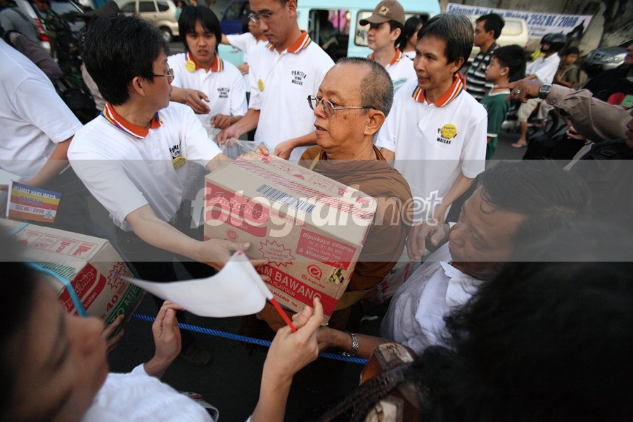 Menyambut hari raya Waisak 2552 BE, puluhan Bhikku, Minggu 11 Mei 08 melakukan Pindapata atau berjalan kaki mengumpulkan dana dan makanan di kawasan Kota Tua, Jakarta Barat. Hasilnya, akan digunakan bhakti sosial Waisak 2552 BE tahun 2008. nnPara Bhikku berjalan kaki mulai dari depan Museum Fatahillah menuju Olimo. Rute jalan yang akan dilalui para Bhikku itu yakni Stasiun Kota, Jalan Pintu Besar Selatan, dan Jalan Hayam Wuruk. Dari Olimo, mereka kembali ke Museum Fatahillah.nnTerlihat Bhante Sukhemo Mahathera sedang menerima sumbangan dari seorang umat.nnnTerima Kasih untuk Danny Wijaya atas informasi acara ini ^_^nnISO 400