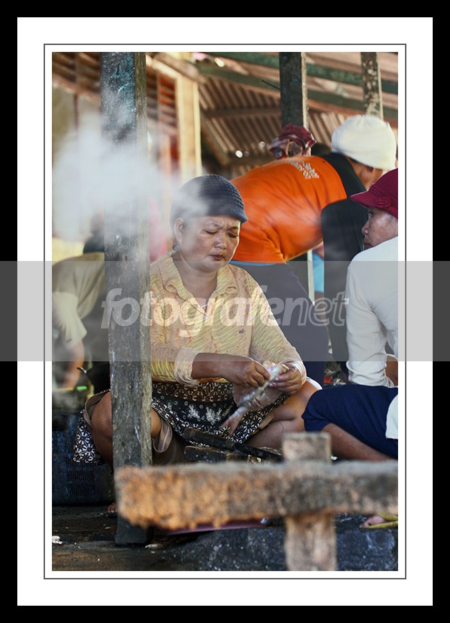 cakep pak ekpresi wajah siibu tertangkap dengan baik terutama matanya yang tertuju pada ikan yang ditangannya dan dilain pihak untuk menghindar asap dari samping..salam