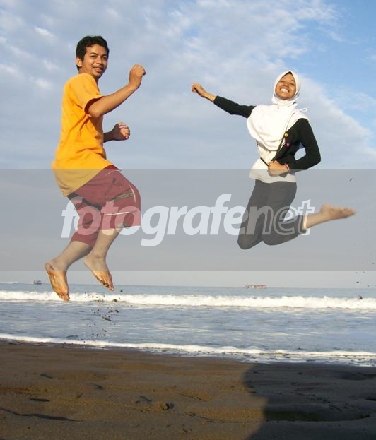 Pak Arief (Kepala sekolah kami) loncat bareng Mitha. . pagi-pagi di Pantai Timur Pangandaran.. lucu iih kpala sekolah foto bareng muridnya sambil loncat-loncatan.! hhe..
