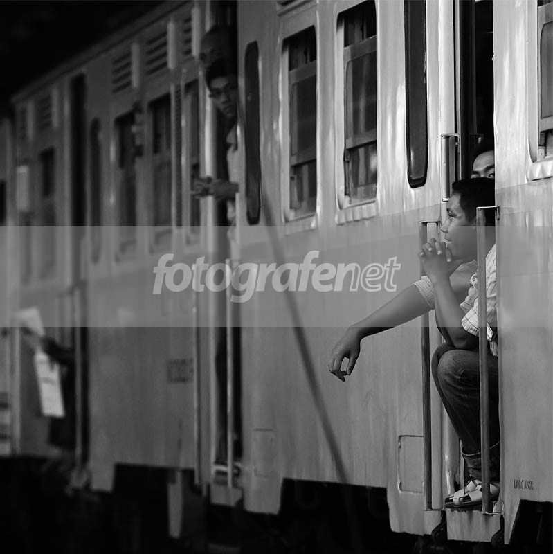 moment menarik, tp POI blm bisa diisolasi dgn baik krn perhatian justru pada mata yg melirik ke arah lensa, yg di belakang POI dan di pintu gerbong di BG... BWnya cakep... salam