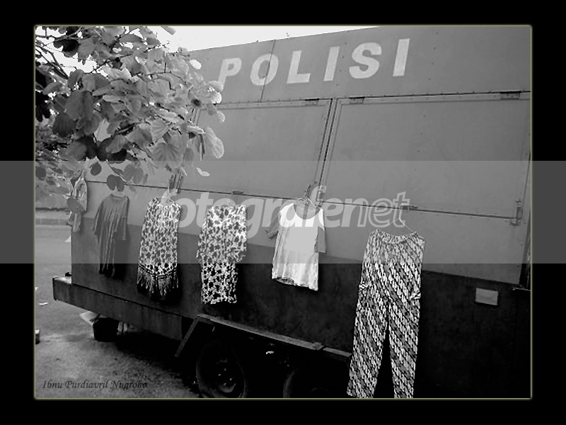 He...he....itu pakean pak Pol untukmenyamar atau ehm....... melihat ban yang kempes,itu berarti peralatan Pol yang sudah tak berguna yah he...he.... Fotonya menarik, apa lagi cropingnya bagian bawah bisa sedikit lebih lebar supaya terlihat lebih mantap.salam.