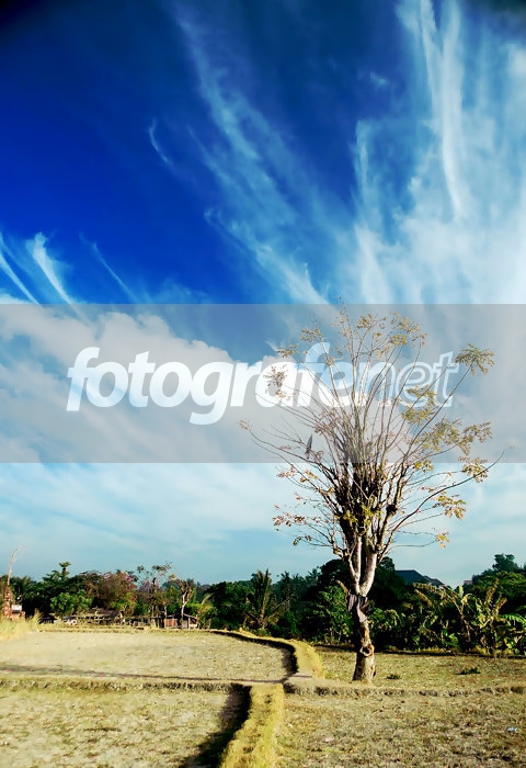 Sebatang pohon yang hidup sendiri ditengah-tengah sawah yg kering