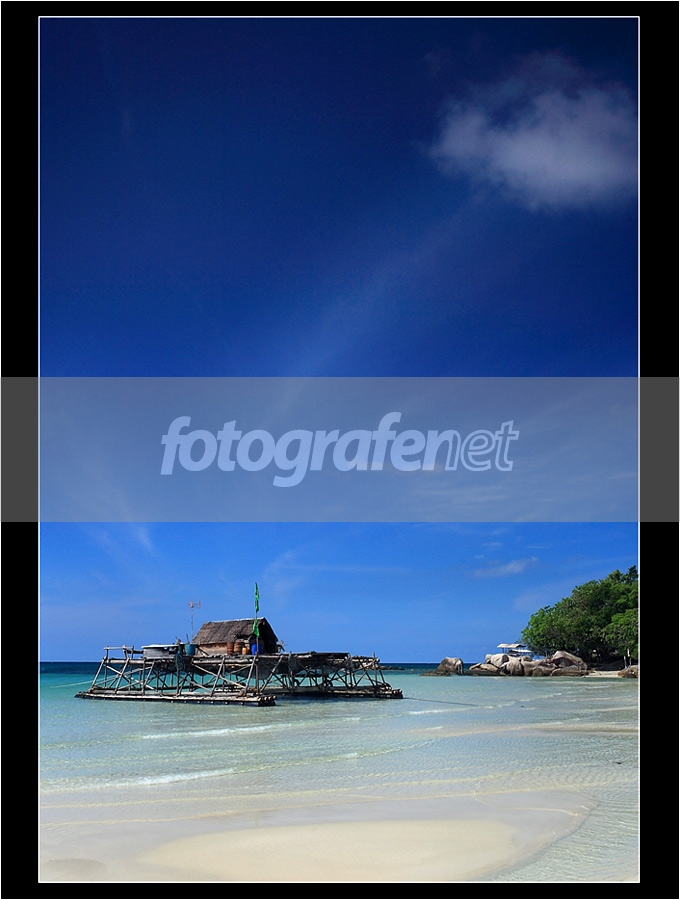 versi true colour dari bagan/bagang.. tetap vertikal, geser angle, zoom dikit...rnBagan/bagang = tempat nelayan menebarkan jaring utk menangkap ikan, seringkali juga menjadi tempat tinggal mereka..rnrnBagan ini sedang merapat di Pantai Trikora, Bintan.rnrn----------------rnKarena jadwal yg padat, tdk terhindarkan tiba di lokasi jam 14.43.. cukup terik, coba dioptimalkan dgn filter CPL dan GND...rnThanks for any C n C..