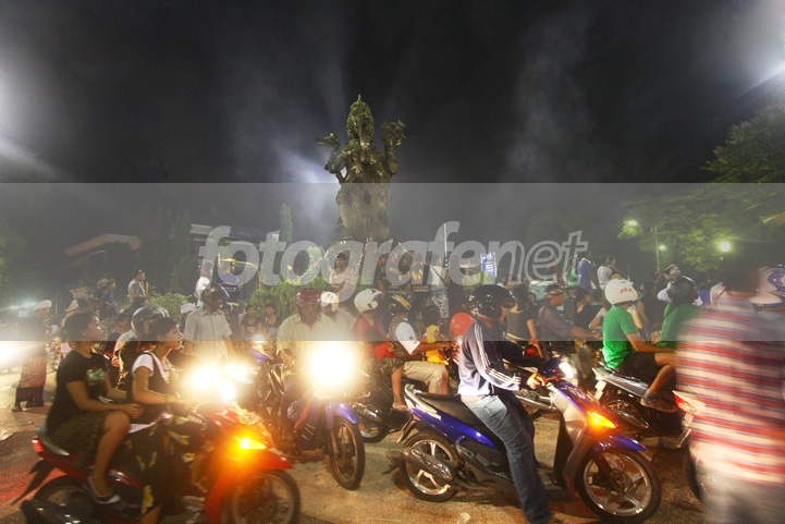 suasana crowdednya terekam dengan cakep nih bli... lampu2nya bertebaran dengan menghembuskan asap2 knalpot.. nice shot anyway