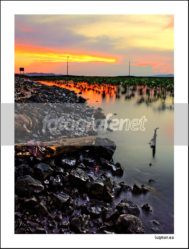 Sebuah suasana senja di area reklamasi lingkungan...rnTErlihat beberapa baris pohon bakau yang memang ditanam untuk mengurangi hantaman ombak ke pantai...rnSaat ini isu lingkungan telah menjadi begitu hangatnya...rnSyukurlah karena kalau bukan kita yang peduli, lalu siapa lagi?rnSeperti kata pepatah yang bijak, mulailah dari hal yang kecil, mulai saat ini juga,,,...rnrnGo green..rnrnSemoga berkenanrnSAlam dan matur nuwun