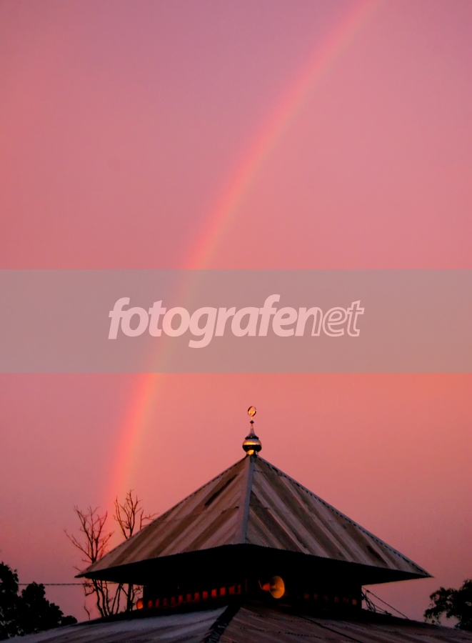 Pelangi nya dapet mas. Pelangi nya melintasi masjid ya??? keren abis.