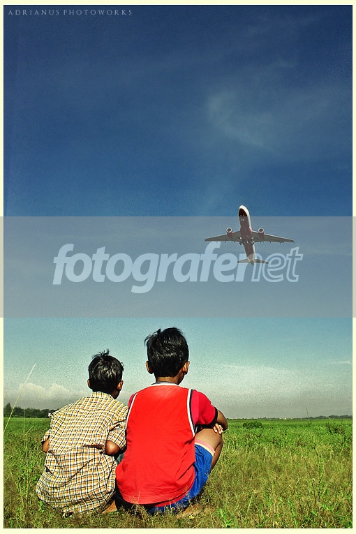 dua orang anak yang memandangi pesawat yang terbang tinggi. Mereka pasti memiliki mimpi & cita2 yang juga tinggi, seperti pesawat itu terbang.rnrnThanks...rnrnnb.rnhunting pagi2 ini bareng sm Hendra Darma & M. Noor Ghiffarirn^:)^