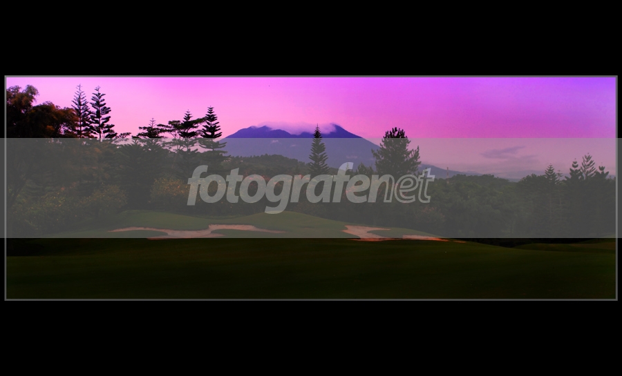 suasana lapangan golf bukit pelagi, terkadang sering di selimuti kabut pegununggan di pagi harirnrnfilter grad. violetrnkamera nikon + lensa tokina 12-24
