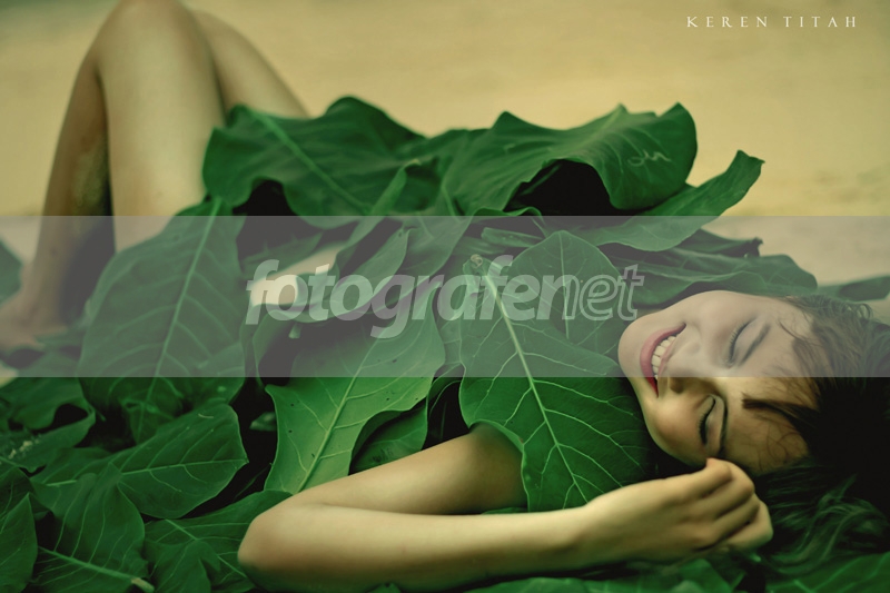 Waah daunnya memberikan efek ilusi seolah-olah model cuma ditutupi daun.. :P mantaph!!