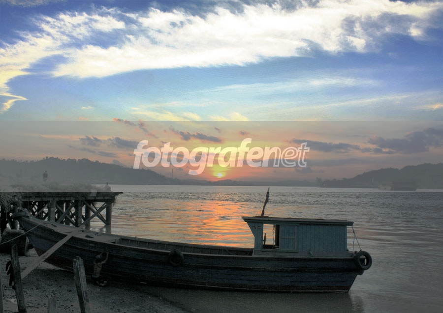 cantik sunsetnya...... ada yg lagi mandiin kapal tuh ya?
