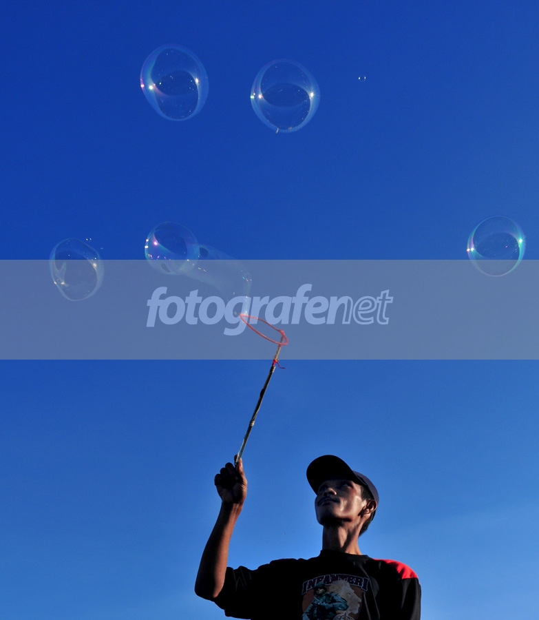 Paduan warna biru dan gelembungnya keren banget .. Tapi mungkin lebih indah jika yang lagi bermain adalah anak kecil yang lucu
