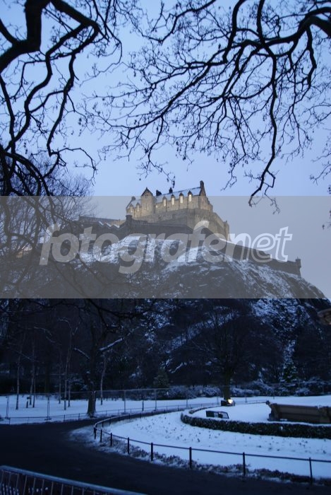 The Edinburgh Castle in Winter, view from Princess Park Edinburgh.nnDate Time Original: 2009:12:22 16:07:05nISO Speed Ratings: 100