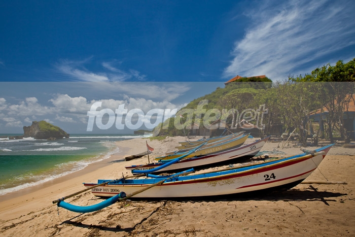 mungkin akan lebih menarik jika posisi pengambil gambar agak ke kanan lagi dan sedikit ke atas (pengambilan dari tempat yg lebih tinggi) sehingga di dapat hasil berjajarnya perahu lebih tampak dan view laut lebih dominan