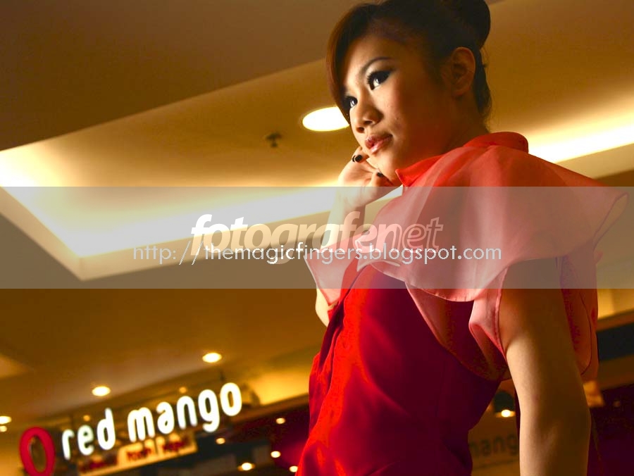 Si model dengan baju merah merona kebetulan bermakna yang sama dengan salah satu merk produk frozen-yogurt.