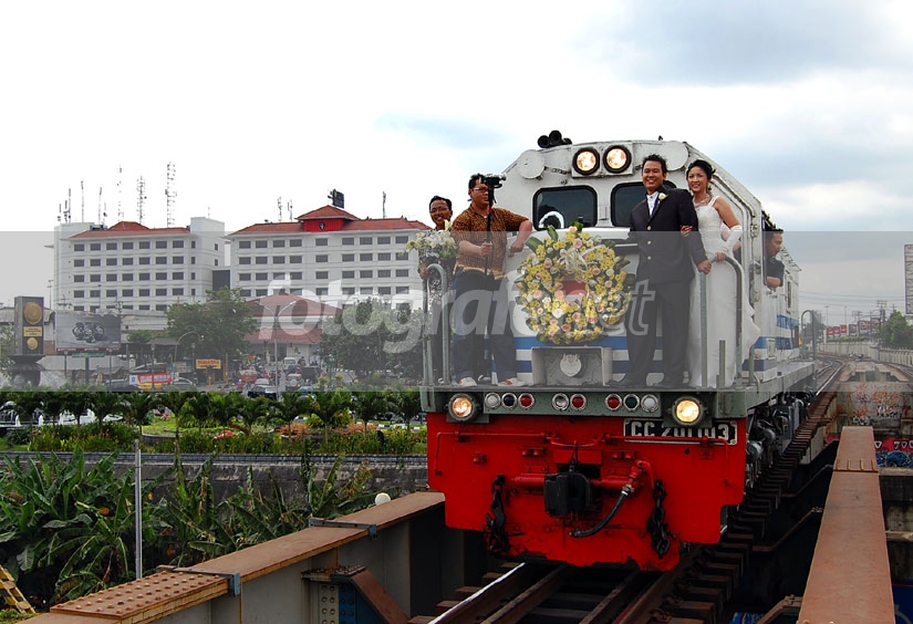 Moment langka, Seorang Railfans yg mengabadikan pernikahannya diatas kereta yg tak bsa lepas dari diri seorang railfans,maknyuzz tenan,perlu diikuti juga jejaknya buat kita2 yg Railfans,hehe.......