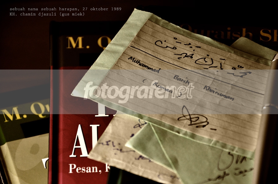 bantu2 bersih2 arsip lama ayah, g sengaja nemuin kertas yg isi ny tulisan nama saya, yg pertama kali ditulis dan diberikan pada saya sewaktu bayi...nnditulis oleh: KH Chamim Djazuli