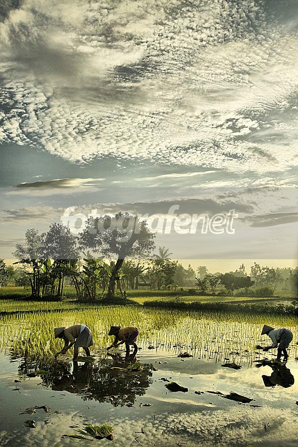 Atmosphere yang luar biasa....dramatis.dari persawahannya, petani dan langitnya..wuiihh :)