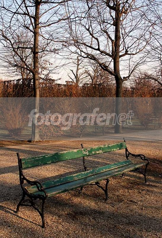 sebuah bangku yang kosong di taman Schoenbrun... saat winter yang tidak bersalju...