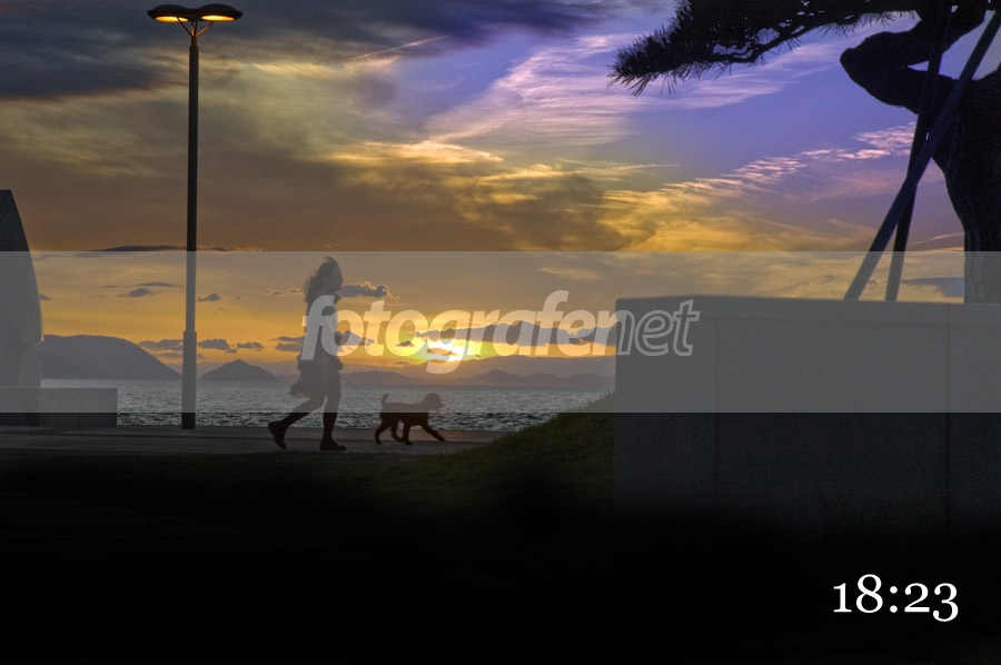 tone langitnya keren tuh..api sayang bro blok hitam dibawah rada mengganggu..ini kl orang yang bawa anjing tuh dibikin silhuet lebih mantab kayaknya...view langit dan laut terganggu sama kotak disebelah kanan....semoga berkenan om