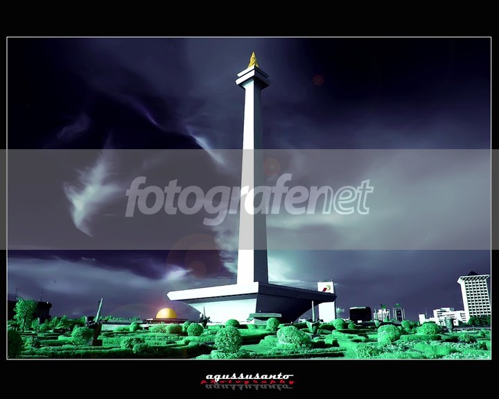 Foto ini memberikan view monas bertone IR yang menarik.Menurut saya akan lebih bagus kalau tidak muncul efek flare. :)