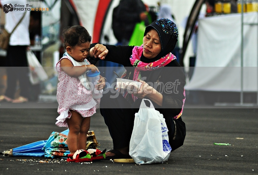 Date Time Original: 2010:09:24 12:11:03rnISO Speed Ratings: 800rnrnrnSungguh kontras!!! Di antara hiruk pikuk ribuan pengunjung, ibu ini menyempatkan diri menyuapi buah hatinya. Kasih ibu tak mengenal batas ruang dan waktu. Salam..