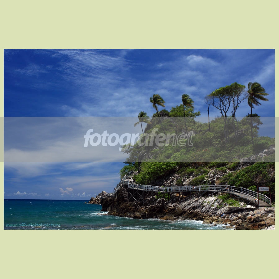 sudut pengambilannya kurang kekiri lagi agar ujung batu karang bisa terlihat jelas apakah dipisahkan oleh laut atau tidak. IMHO