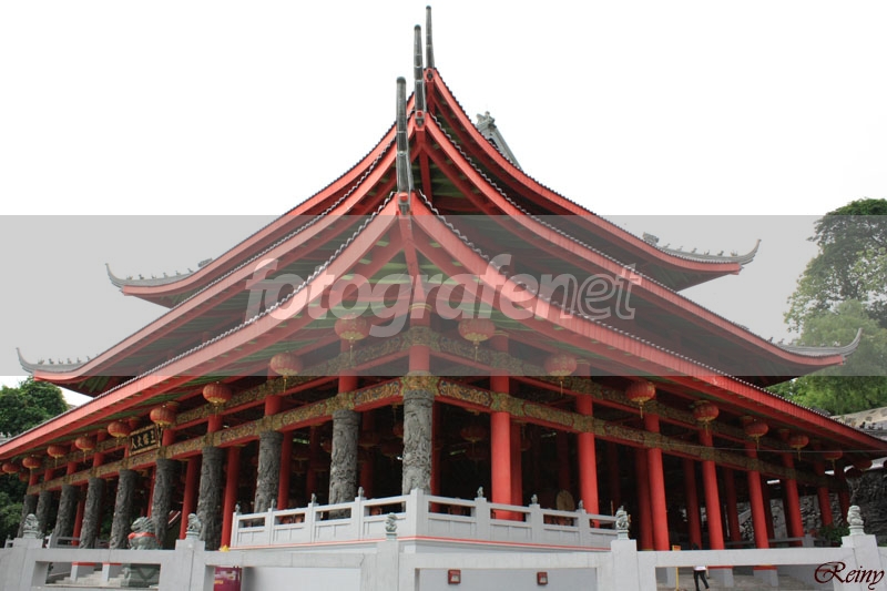 Anglenya terlalu centre membuat foto ini kehilangan komposisi yg baik, kondisi langitnya juga tidak mendukung, sebaiknya diambil bagian kecil dari bangunan ini saja untuk mengexpose lampion atau element khas lainnya. Salam.