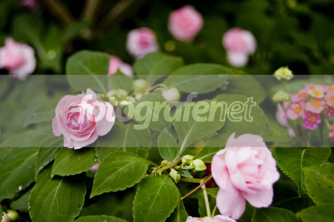 Hamparan bunga mawar merah jambu.